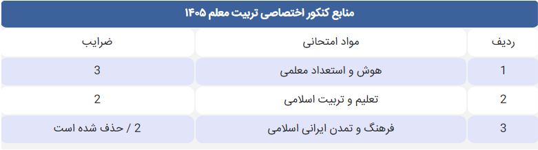 ساختار ، منابع و ضرایب امتحانی دانشگاه فرهنگیان
