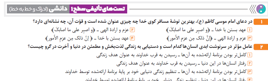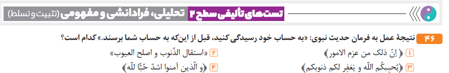 بخش تست های تالیفی، سطح2:تحلیلی،فرادانشی و مفهومی(تثبیت و تسلط):