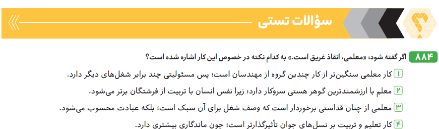 ارائهی 1300 تست معلمی دین و زندگی (630 تست دین و زندگی دهم + دین و زندگی یازدهم 250 تست + 420 تست مهارت معلمی)